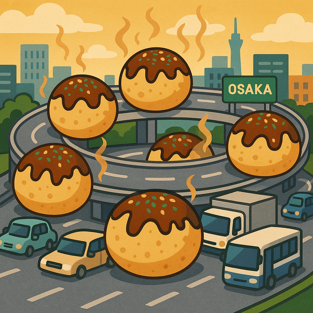 タコ焼き渋滞、環状線を包み込む——大阪、ソース香る朝の異常事態