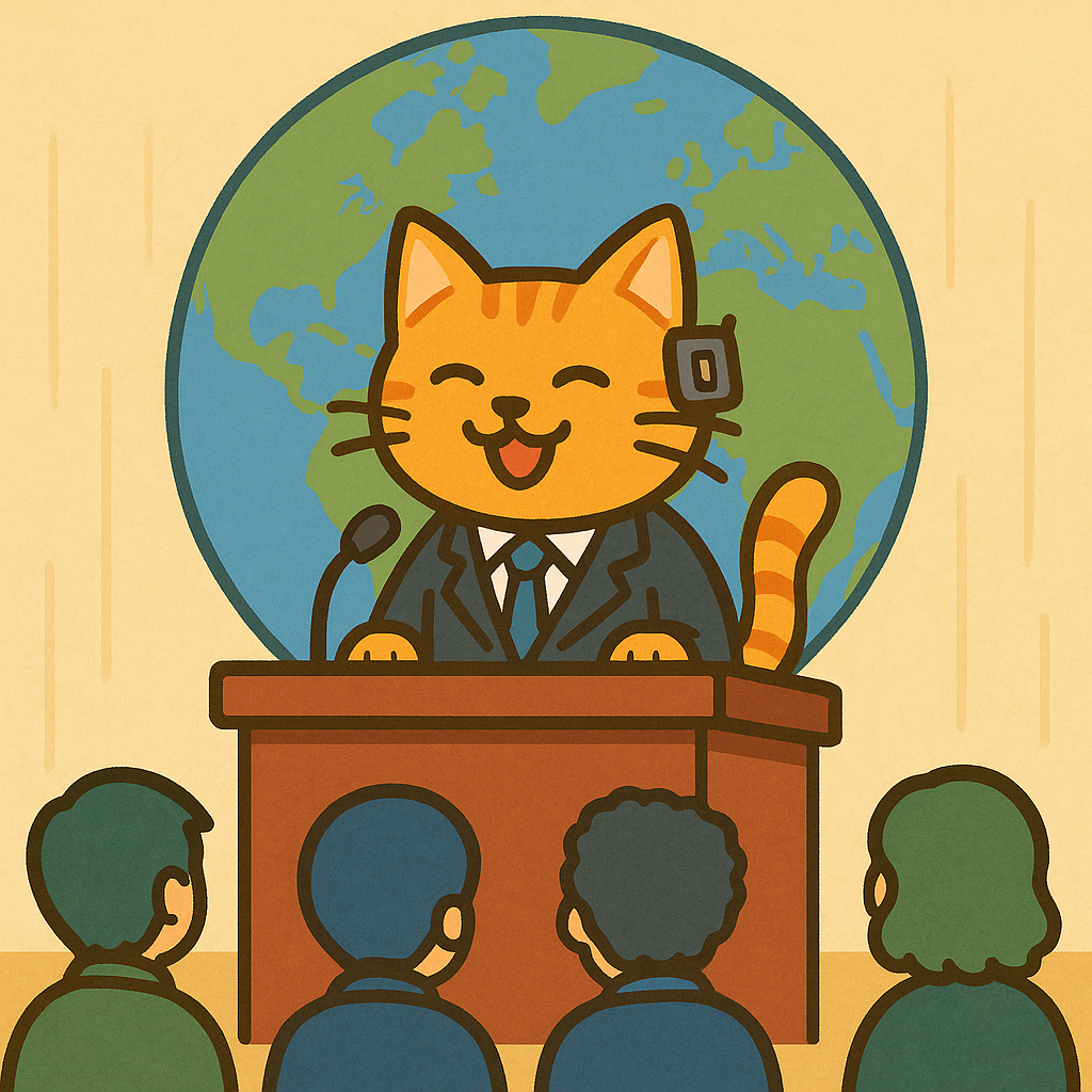 世界同時会議、うっかりAI猫が議長に就任