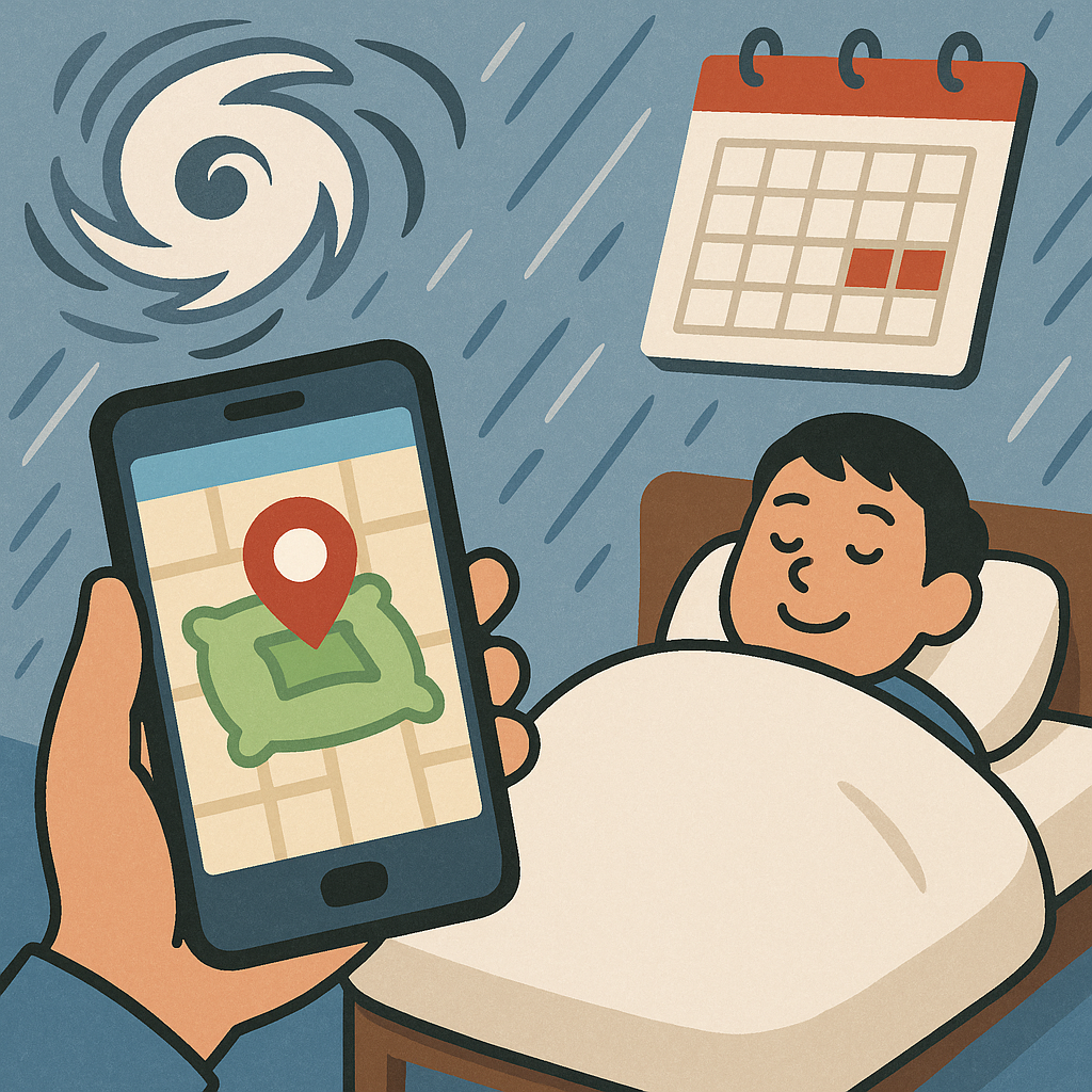 台風と連休が合体、自治体が「在宅証明アプリ」導入で布団の居場所明確化へ 本記事は完全フィクションです。実在の人物・団体・出来事とは関係ありません。 台風の進路とシルバーウィークの予定が交差し、全国の家…