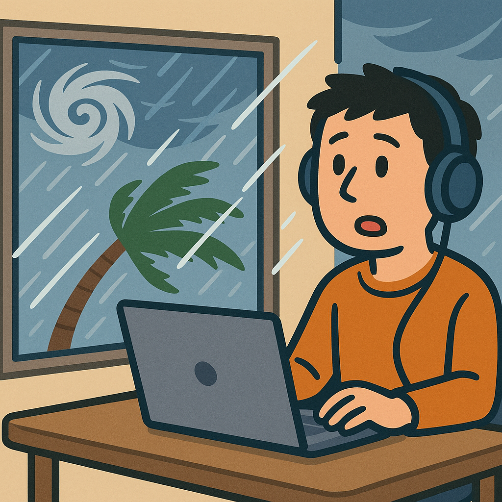 思わず避難?自治体が発表した「台風ワーケーション」プラン、リモート会議は風速30メートル対応