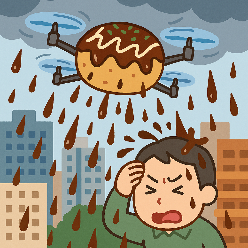 空からソース、街は香ばし?大阪市が「たこ焼きドローン」実験でまさかの豪雨発生