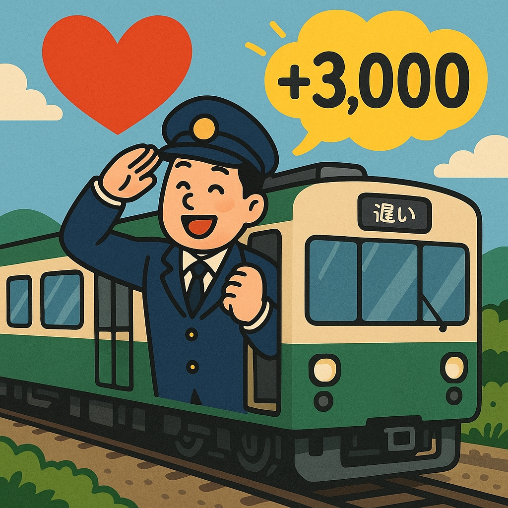 遅延は愛だ!霧ヶ丘電鉄「遅延ポイント」導入で沿線がまさかの活況   霧ヶ丘電鉄は本日、列車の遅延に応じて貯まる地域通貨「チエン」の導入を発表した。遅れ1分につき1チエン、商店街のコロッケから昭和カラオケ…