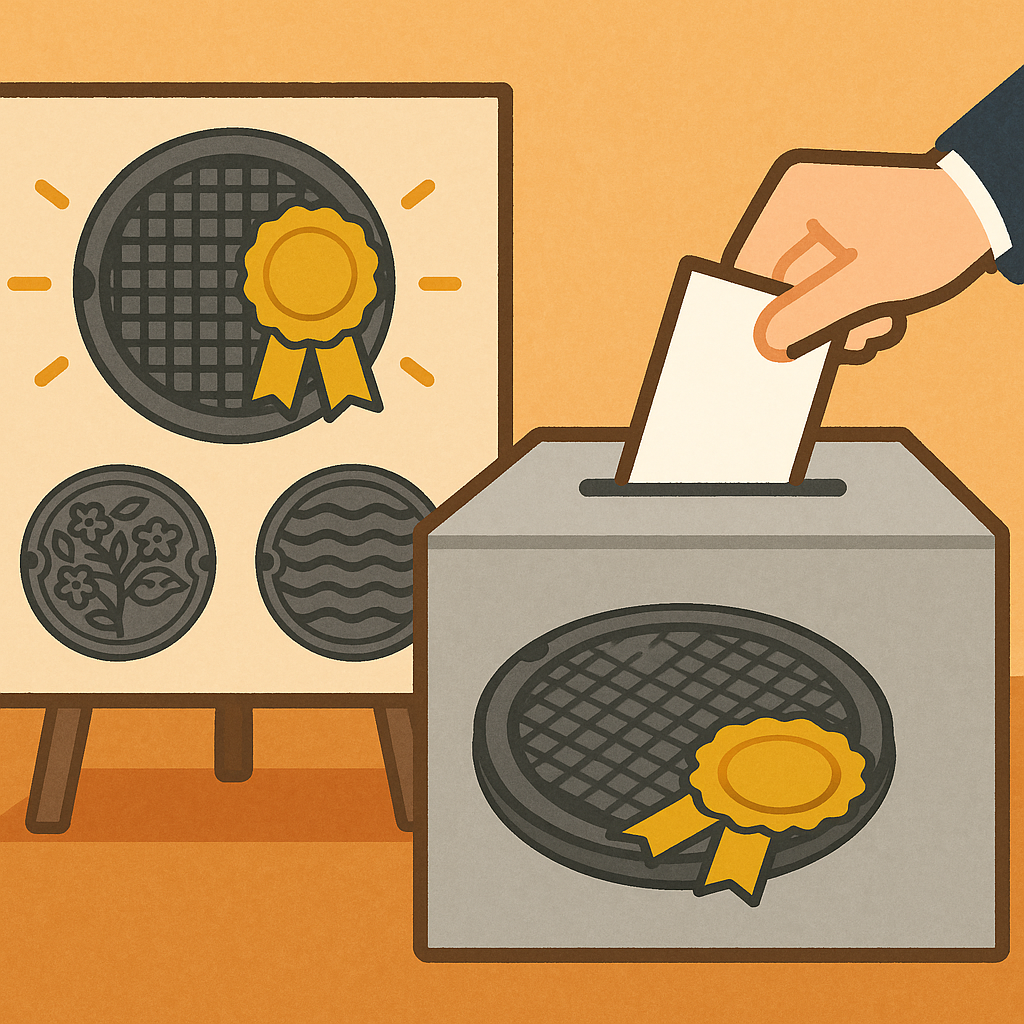 全国初「マンホール蓋総選挙」開催、なぜか開票所のフタが最推しに