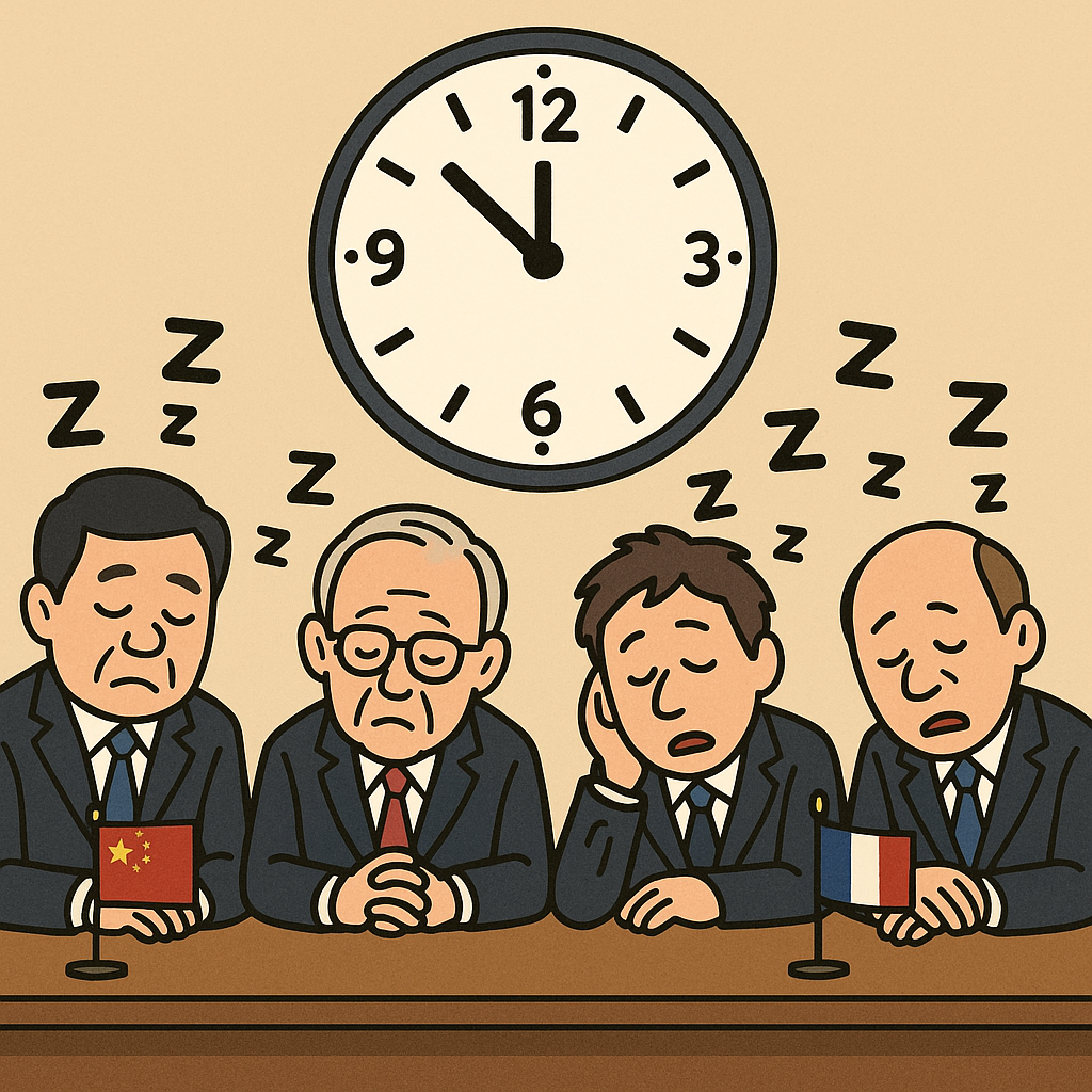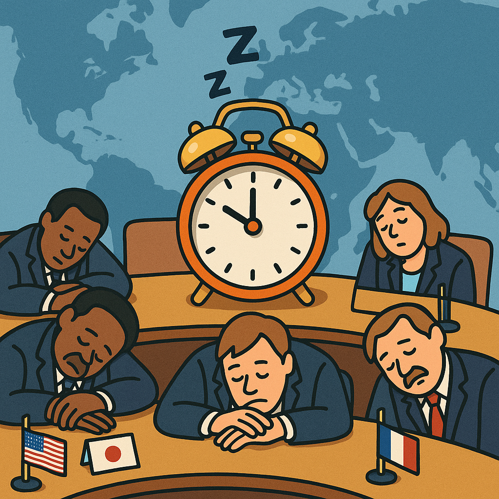 各国代表、会議を延長しすぎて時差を統一 世界標準ねむけ時刻を採択