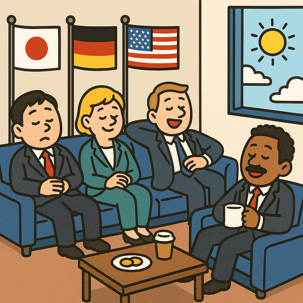 各国代表、会議室より休憩室で合意—世界ゆるサミット閉幕 各国から集まった代表団は、三日間の激論の末、「会議室より休憩室のほうが建設的」という歴史的合意に達した。公式議題は気候、AI、経済だったが、最終文…