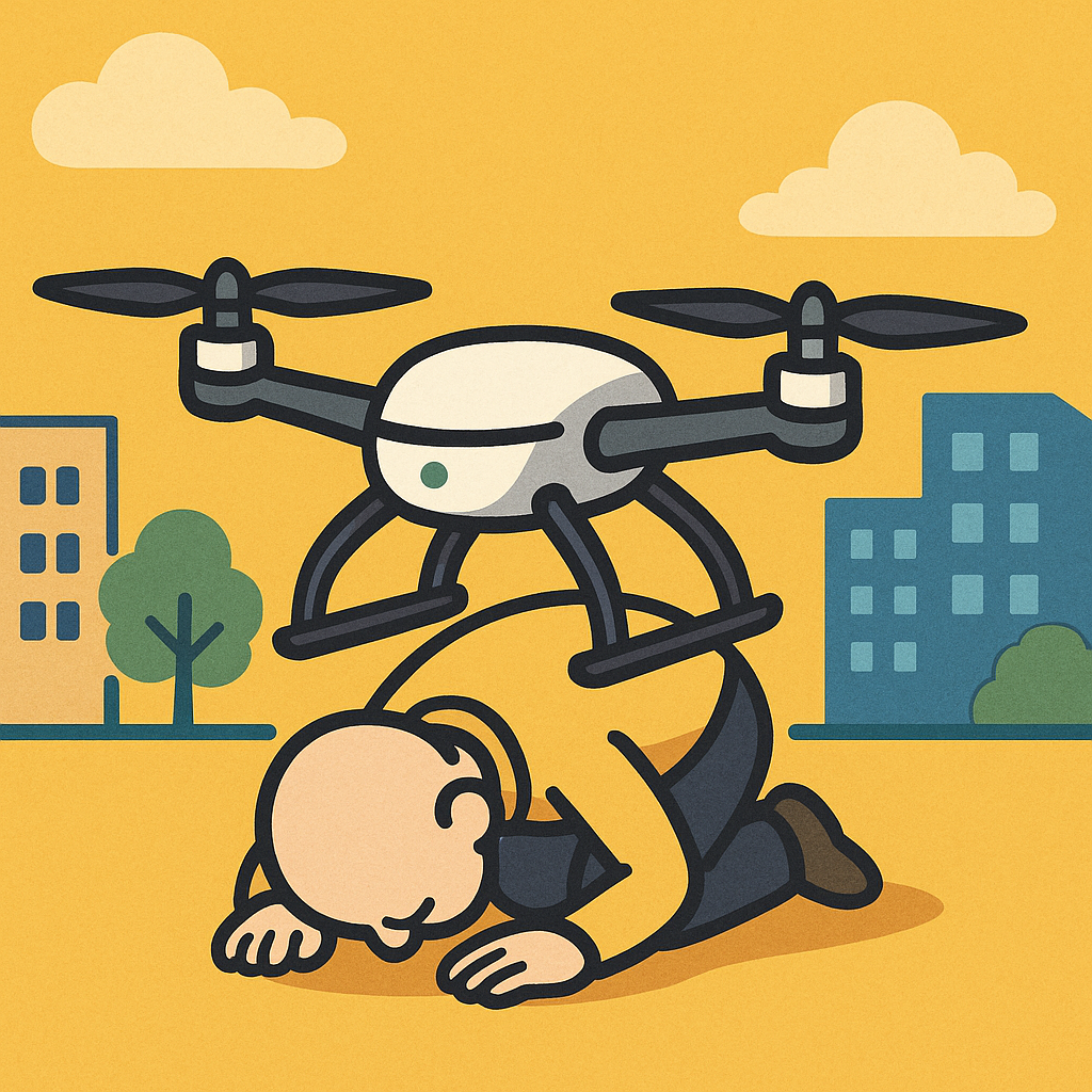 空飛ぶ「代わりに謝ります」ドローン、街角で土下座を学習中